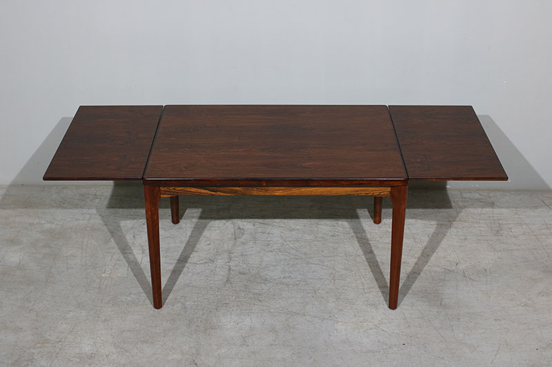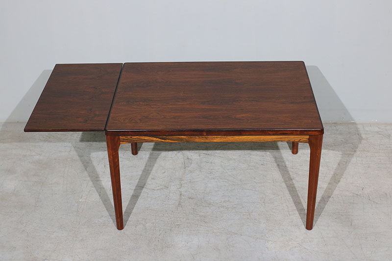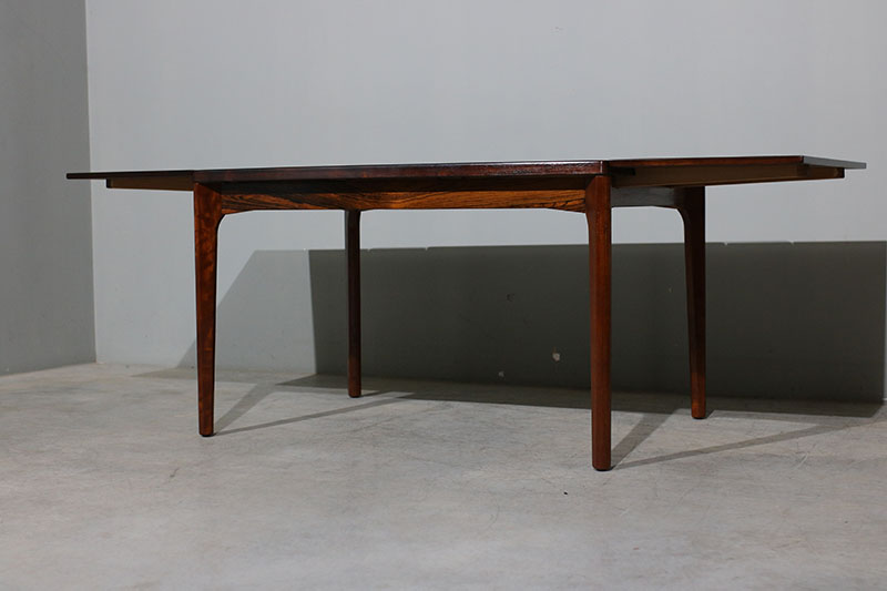 Mesa de jantar dinamarquesa extensível em pau santo, desenhada por Henning Kjaernulf, produzida por Vejle Mobelfabrik.