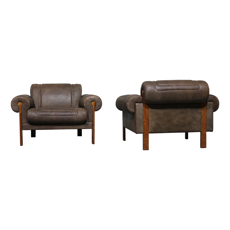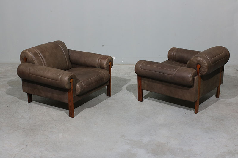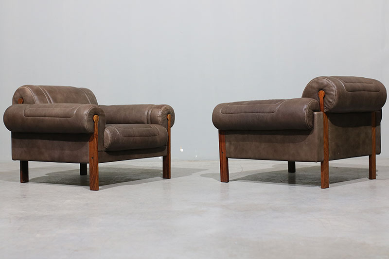 Par de poltronas em pau santo e couro desenhadas por Sven Ellekaer.